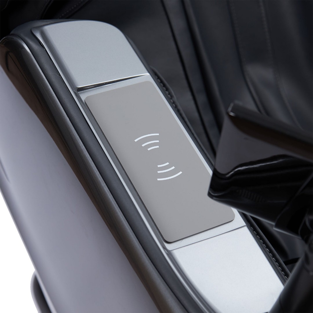 - В подлокотник встроена беспроводная зарядка для мобильного телефона