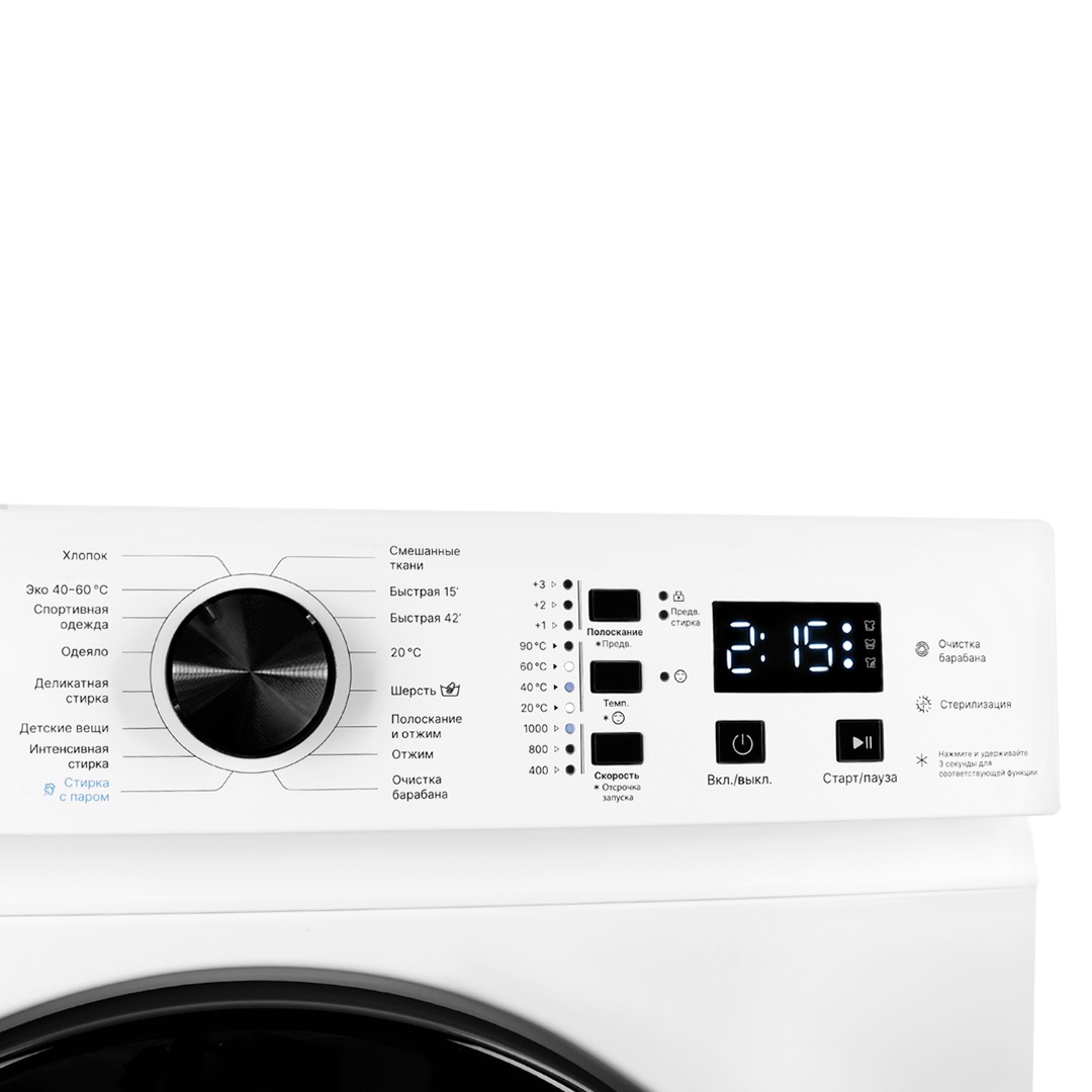 - Глубина: Вместительный барабан для загрузки 6 кг белья в узком корпусе 40 см.