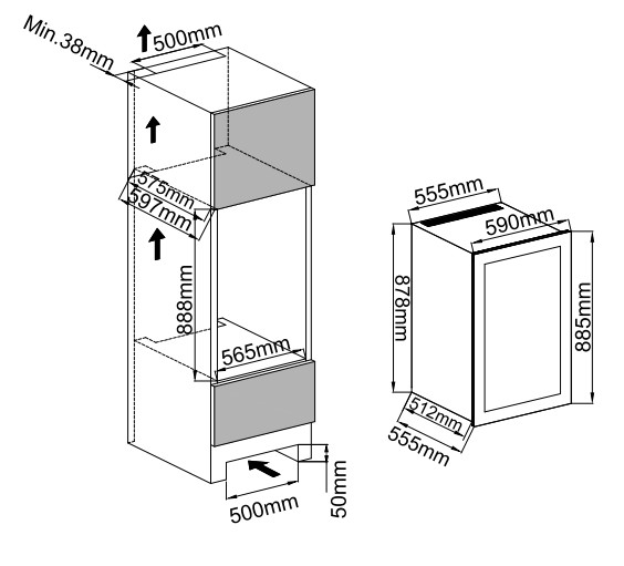 - Встраиваемый в колонну винный холодильник;